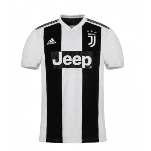 Домашнюю форму Ювентуса 2018-2019 разрабатывал немецкий промышленный концерн Adidas. Экипировка чемпионов Италии представлена в привычной для футбольного клуба классической черно-белой гамме. На лицевой стороне футболки находятся 5 широких полос. На груди размещены логотипы компаний-спонсоров и герб ФК. Рукава — белые с 3 черными полосами. На задней части футболки нанесены инициалы и номер игрока. Шорты и гетры выполнены в белой гамме с черными полосами, свойственными одежде компании-разработчика.