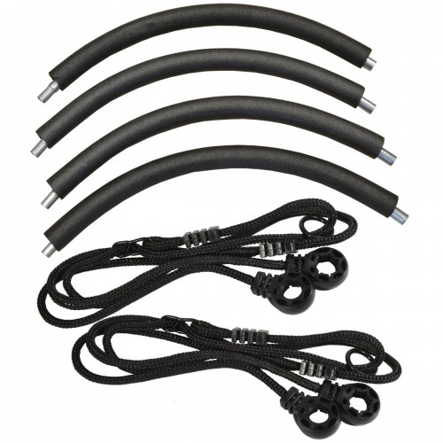 Гойдалки виготовлені з металевих труб, покритих піною, що поглинає вібрації. На широке сидіння встановлюється міцна сітка з поліпропілену з металевим каркасом, облямовані піною. Міцна конструкція, тканину Oxford і плетені канати товщиною 10 мм дозволяють вантажопідйомність до 150 кг. Завдяки цьому дітям і навіть дорослим гарантована безпека. Гойдалки - відмінне рішення для всієї родини.