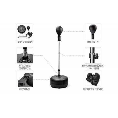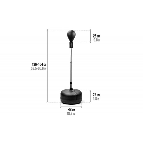 Обладнання з резервуаром, наповненим піском або водою, забезпечує його стійкість, а широкий діапазон регулювання висоти дозволяє підлаштувати його під зріст тренуючого.