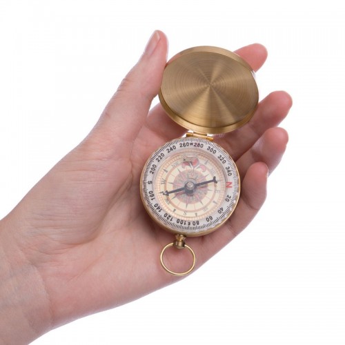 Компас обеспечивает отчетливую видимость шкалы даже в темное время суток благодаря тому, что стороны света на его циферблате обозначены люминесцентными красками. Дизайн компаса отвечает требованиям простоты и функциональности. Его корпус имеет приятный золотистый цвет.