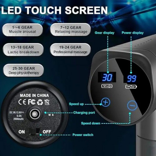 30 регульованих рівнів швидкості: ручний масажний пістолет Valano пропонує 30 різних рівнів швидкості до 3200 об/хв. Наш пістолет для глибокого масажу тканин має амплітуду 12 мм, що дозволяє перкусії глибоко проникати в глибокі тканини.