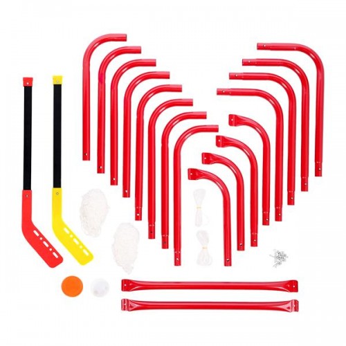 У набір входить: 2 ворота, 2 ключки, 1 м'яч, 1 шайба