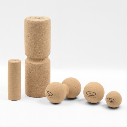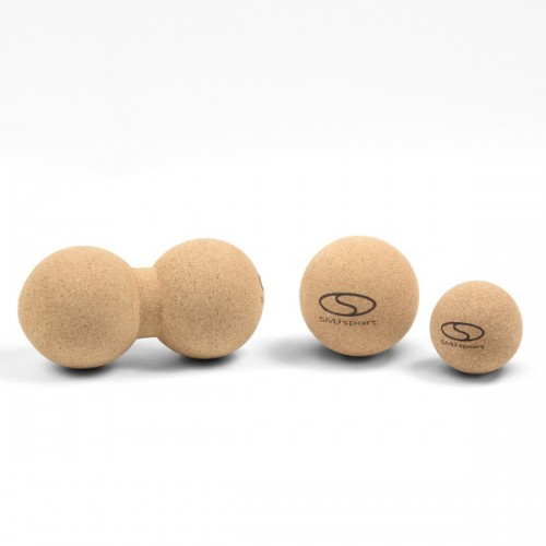 Корковий набір для масажу: ролик + маленький м'яч + подвійний арахісовий м'яч.