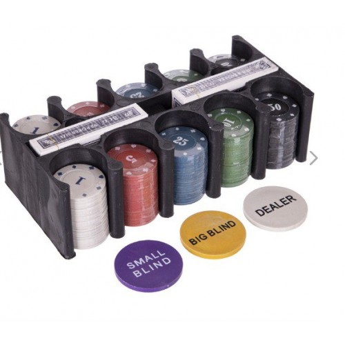 Цей покерний набір поставляється з усім необхідним для гри. Він включає комплект пластикових фішок, які мають різний номінал, позначений як цифрами, так і кольором. Комплект також включає дві стандартні колоди карт, а також фішки великого блайнда, малого блайнда і дилера. Крім цього в наборі є сукно покеру – своєрідна данина традиціям та відмінний спосіб захистити фішки та карти від подряпин, тим самим продовживши термін їх експлуатації. Для зберігання раціонального зберігання фішок передбачено пластиковий контейнер. Всі елементи комплекту укладені в коробку з тонкого листового металу. компактну та легку.