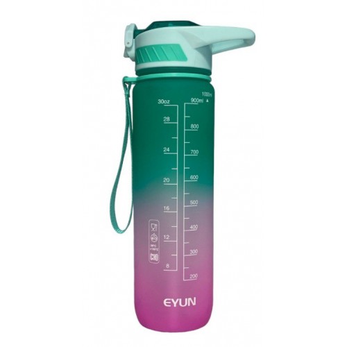 Пляшечка об'ємом 1000 мл для зберігання рідин виготовлена з гіпоалергенного пластику. У пляшечки широка кришечка на різьбленні, складаний носик поїльника, трубочка та ремінець для руки