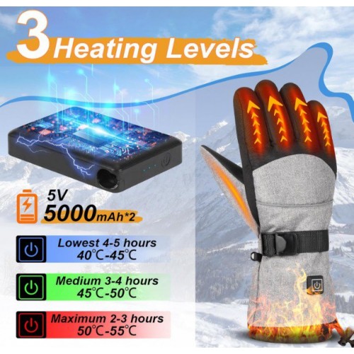 【Інтелектуальний контроль температури 3 рівня】 Рукавички з підігрівом живляться від 2 літієво-іонних батарей 5 В 5000 мАг, які виділяють тепло всій руці протягом 60 секунд, щоб стимулювати кровообіг. Взимку він може тримати руки в теплі до 6 годин. Інтелектуальне налаштування 3 режимів нагріву: червоний (50-55°C) на 3 години, білий (45-50°C) на 4 години, синій (40-45°C) на 6 годин, ви можете налаштувати відповідно до ваших потреб Рукавички з підігрівом температури.