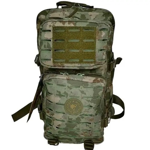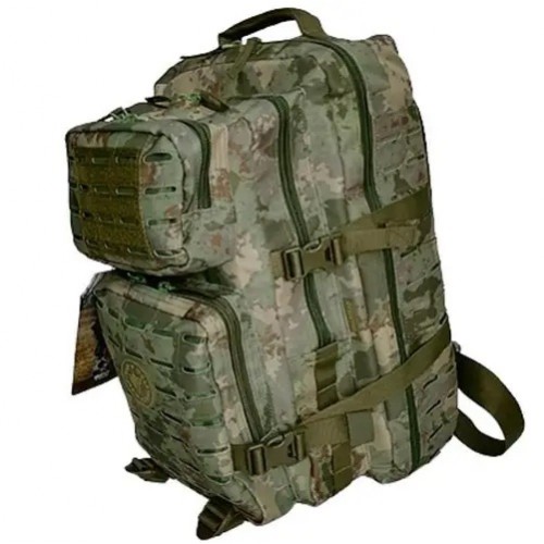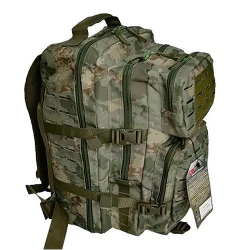 Дві кишені спереду, відділення посередині, головне відділення з дрібними кишенями, бічні ніші на молі, фасадні ніші на моллі, стяжки на фастексах збоку та знизу, м'які лямки, поясна фіксація, водонепроникний матеріал.