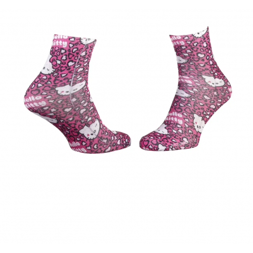 Мультяшні шкарпетки з принтом HELLO KITTY гарантують, що ваш зовнішній вигляд стане чимось особливим і оригінальним. Веселий аксесуар доступний у жіночих розмірах. Добре пропускають повітря. Ідеальні для повсякденного носіння. Прекрасно виконують гігієнічну функцію, захищаючи шкіру ніг від натирань взуттям, ідеально облягають ніжку та дарують комфортне відчуття. У пачці 1 пара шкарпеток.