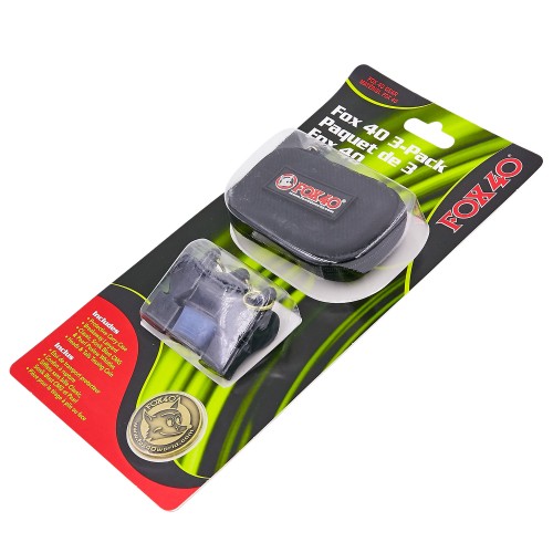 Набір від FOX40 складається з 3 свистків однакового розміру. Їх можна зберігати в чохлі компактного розміру, який застібається на блискавку. Чохол добре тримає форму та захищає свистки від пошкоджень. Також до комплекту постачання входить шнурок, який регулюється за обхватом. Його можна використовувати для будь-якого зі свистків.
