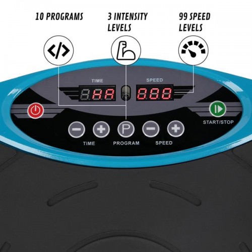Платформа дозволяє тренуватися з 3 рівнями інтенсивності. Стоячи в центрі пристрою, ви імітуєте ходьбу, дотримуючись невеликої відстані між ногами, ви біжите підтюпцем, а широко розставивши ноги, імітує спринт. Пристрій має 99 рівнів швидкості в поєднанні з таймером, який має комп’ютер SVP01 , що гарантує, що обладнання буде адаптовано до ваших очікувань. У набір входять ремінці опору, які урізноманітнюють і доповнять тренування. Крім того, платформа відмінно стимулює кровообіг, розслабляє і підтримує регенерацію м'язів. Додатковою перевагою є килимок для точкового масажу, що входить до комплекту. Килимок кладуть на платформу. Створено в інноваційній двозонній системі точкового масажу. Він має вищі та нижні виступи, завдяки яким ми можемо регулювати рівень масажу, позиціонуючи ноги. Поєднання вібрацій і спеціальних масажних виступів, розташованих на килимку, гарантує ідеальний масаж стоп і, як наслідок, повне розслаблення.