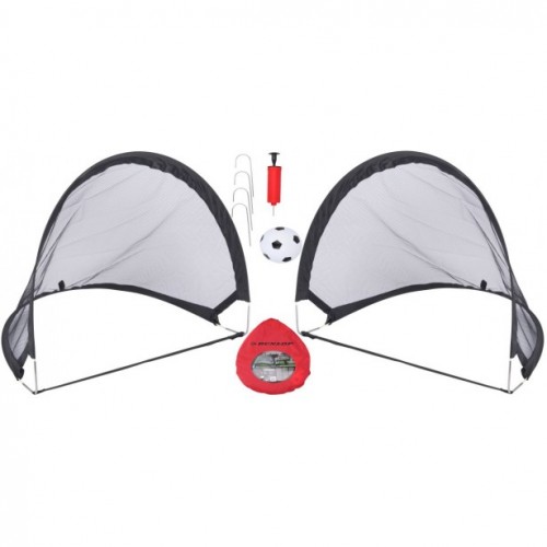 Набір із 2 футбольних воріт Dunlop, що самостійно розгортаються, — чудовий продукт для маленьких футбольних уболівальників. Цілі дуже легко розкрити, а зібрати їх назад дуже просто й швидко. У набір входить чохол, який полегшує транспортування та зберігання воріт. Такий набір відмінно підійде для тренувань вашої дитини, а складені ворота невеликого розміру дозволять взяти їх на сімейну відпустку.